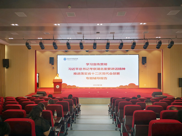为进一步深入学习贯彻落实习近平总书记考察湖北武汉重要讲话精神,推进湖北省第十二次党代会决策部署落实落地,9月15日学校举办主题宣讲活动,湖北省第十二次党代会代表、学校机电学院院长禹诚教授作专题辅导报告。全体党支部书记、组织员和民主党派代表参加学习。