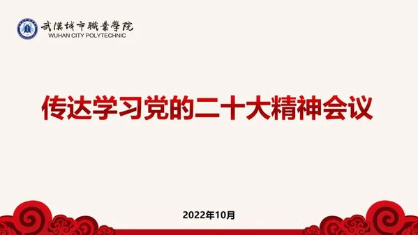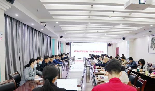 校党委书记邓院方传达党的二十大精神和“武汉市传达学习党的二十大精神会议”精神。全体校领导,各党总支书记,各部门主要负责人,师生代表参加会议。