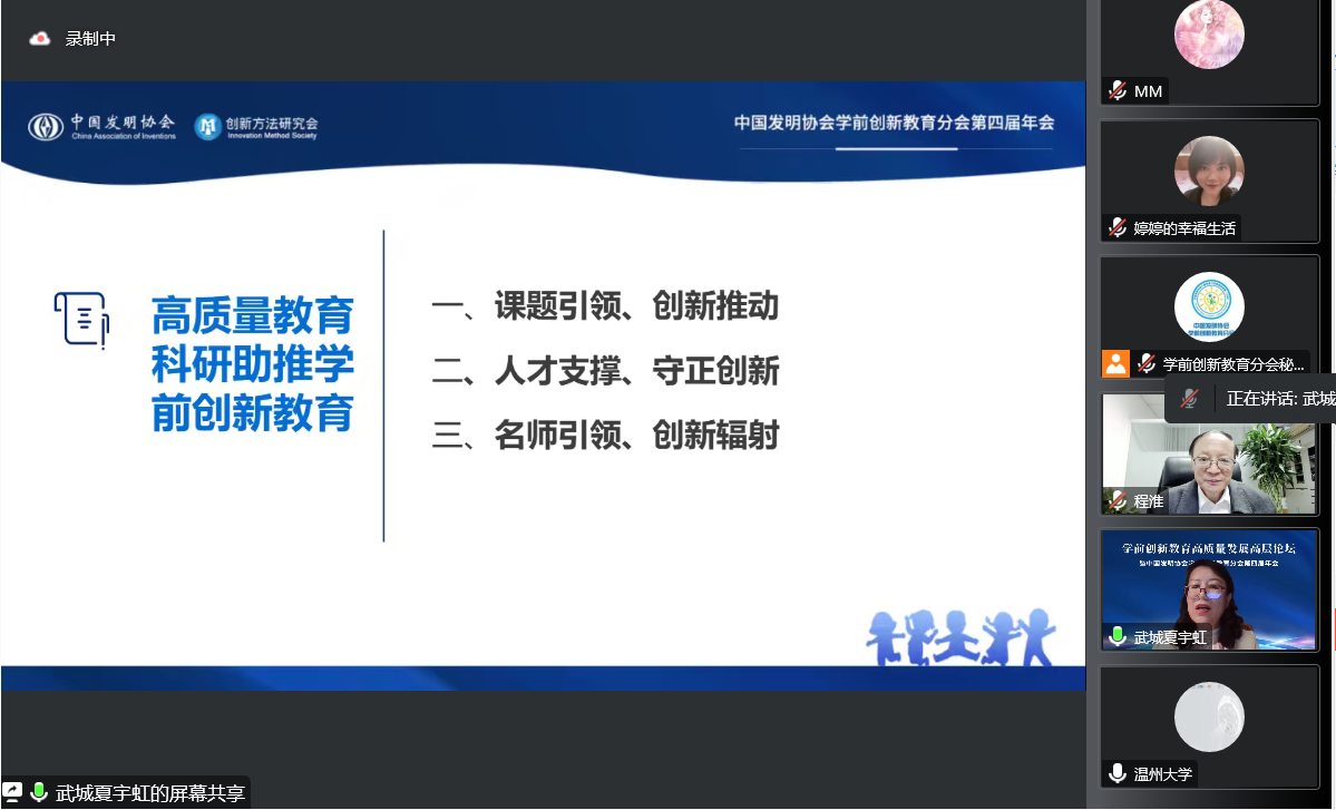 夏宇虹教授论坛的主题为《高质量教育科研助推学前创新教育》