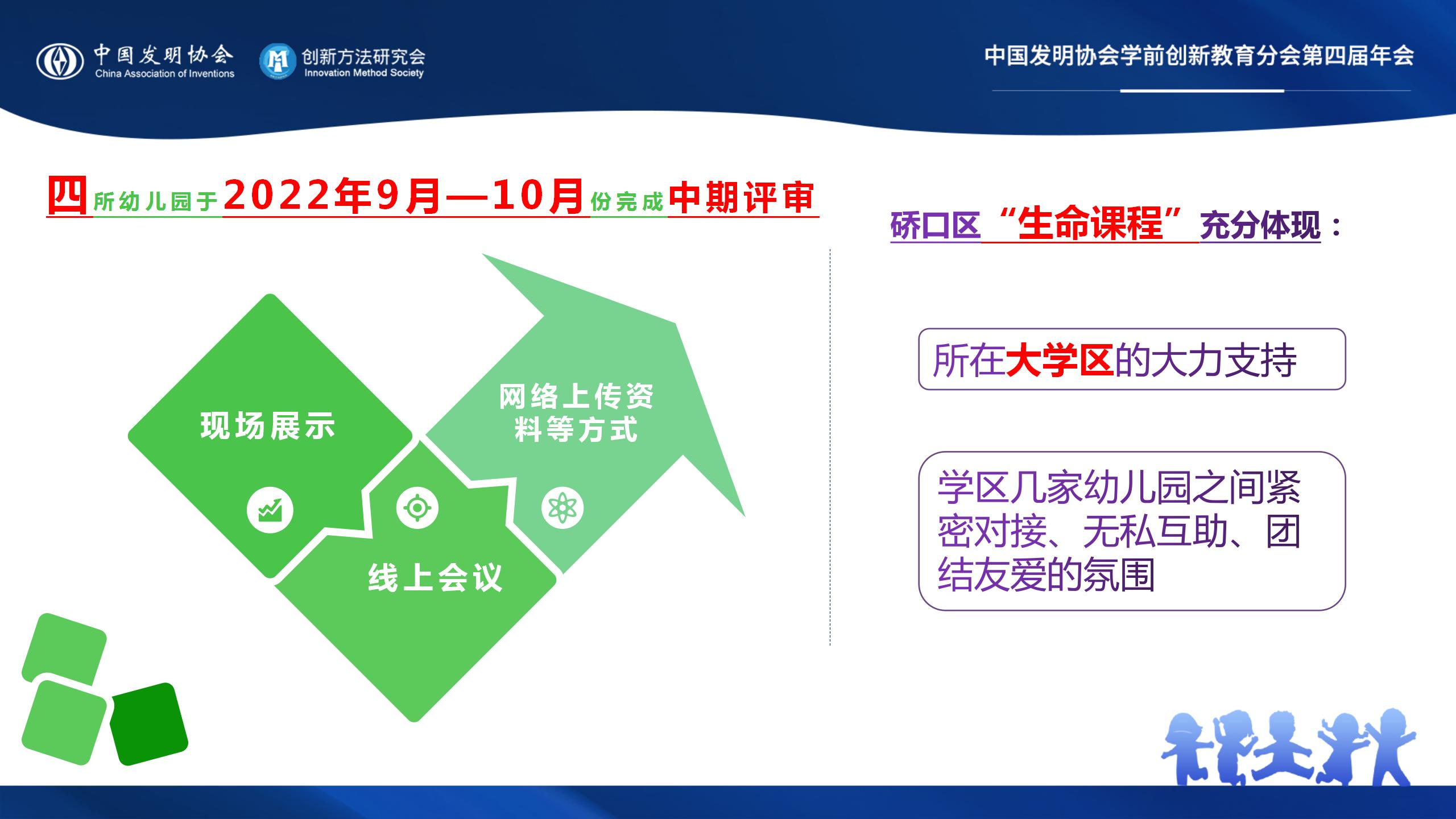 四所幼儿园于2022年9月——10月分别以现场展示、线上会议、网络上传资料等方式完成了中期评审,得到了相关专家的评议与指导,为各园课题研究更踏实、更稳健、更坚定地推进和落实指明了方向。