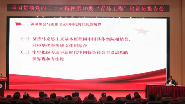学校党委书记邓院方作题为《认真学习贯彻党的二十大精神 团结奋斗 立志做担当民族复兴大任的时代新人》的宣讲报告。报告围绕学习贯彻党的二十大精神心得体会,按照习近平总书记“五个牢牢把握”、中央“九个深刻领会”“八个聚焦”“七个讲清楚”的要求,结合青年成长成才的实际进行宣讲。