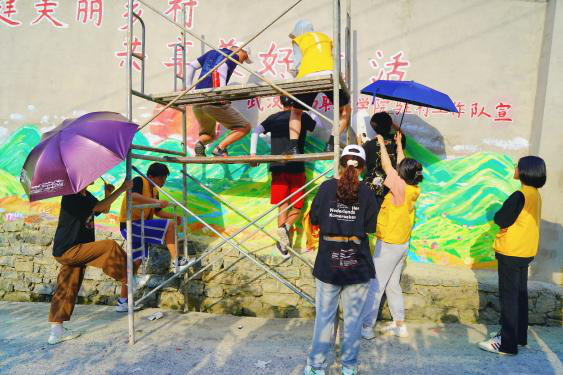 生活中的黄逸冰,爱唱歌、爱绘画、爱摄影,记录时光,美化生活。随学校恩施石桥子村“同心聚力”社会实践队奔赴恩施进行社会实践时,他发挥专业所长,与团队成员分工协作,以“绿水青山就是金山银山”为主题绘制墙绘,突出当地茶园特色,以丙烯、画笔为绘画材料,精心设计,美化村容村貌。这些多姿多彩的文化墙让原本老旧、空白的墙壁变得色彩斑斓,形象生动、通俗易懂的内容设置也吸引了许多村民驻足欣赏。
