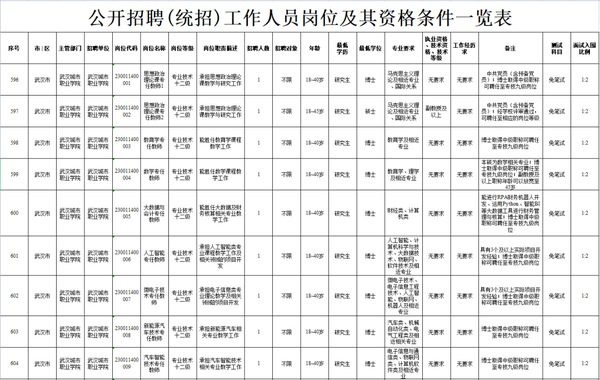 1.本招聘公告由武汉城市职业学院人事处负责解释。