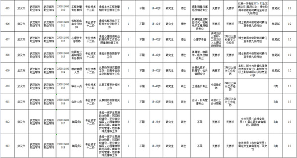 4.年龄一般应在18周岁以上、35周岁以下(1987年1月至2004年12月期间出生)。经招聘单位同意,博士研究生、具有中级及以上专业技术职称的人员、高技能人才年龄可适当放宽。具体年龄要求详见《武汉市2023年度事业单位公开招聘岗位一览表》;