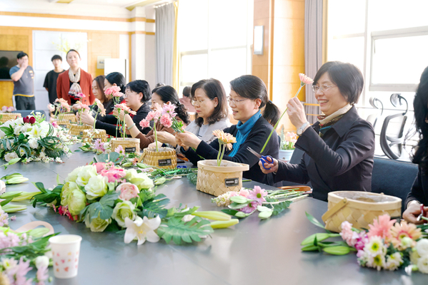 3月7日下午,学校工会在“教工之家”组织女职工代表开展了 “三八” 妇女节插花活动。校长张英,副校长、工会主席杭勇敏以及各分工主席、女教职工代表参加了活动。