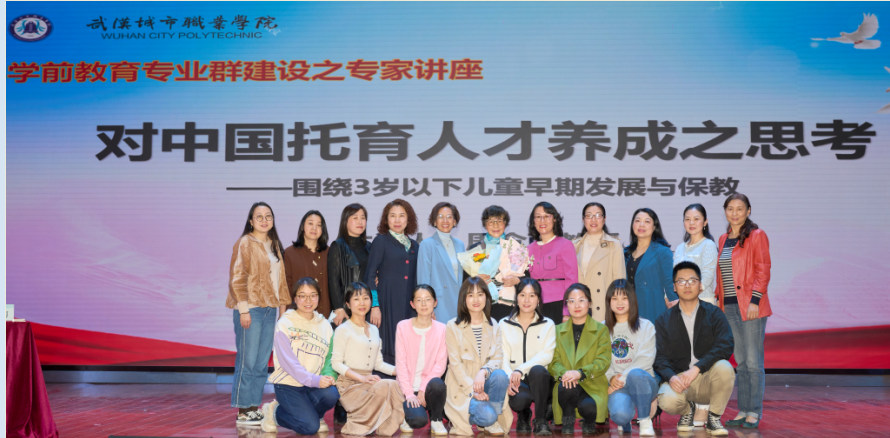 2023年3月10日下午,由夏宇虹省学前教育技能名师工作室、学前教育学院学前教育研究所诚邀华东师范大学周念丽教授来学院开展了《对中国托育人才养成之思考——围绕3岁以下儿童早期发展与保教》专业群建设之专家讲座。讲座地点在武汉城市职业学院学前教育学院艺术楼小礼堂。夏宇虹教授和夏宇虹省学前教育技能名师工作室的成员、学前教育学院教师、早期教育和婴幼儿托育服务与管理专业的学生们齐聚一堂,共同聆听了周念丽教授的精彩报告。