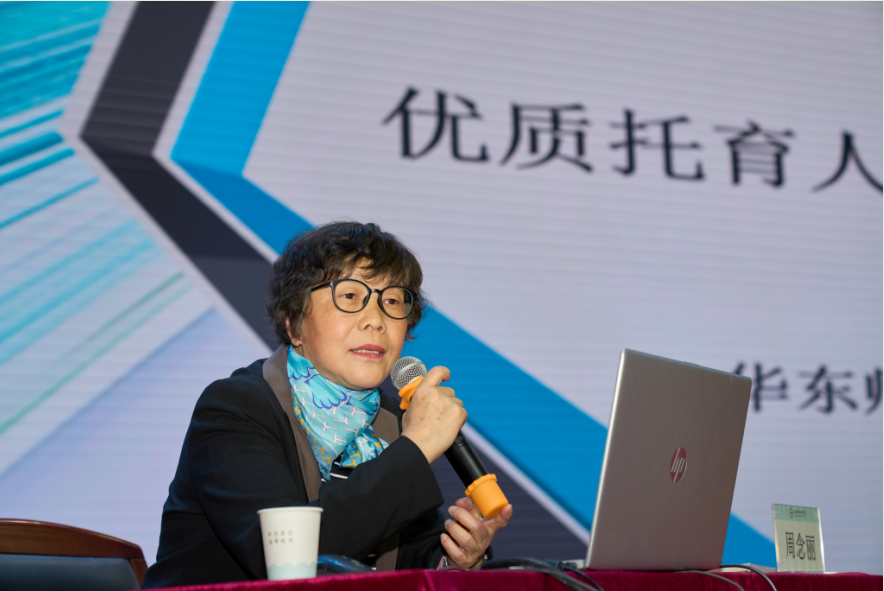 周教授认为托育人才应当是守护者、培养者、指导者和落实者,托育人才的职业规范可分为职业道德、职业行为和法律。她重点强调了托育从业人员的职业职责:全面照护婴幼儿的生长与发展、全面服务育婴幼儿家庭、提升专业和敬业奉献;托育服务人员的职业规范应当具有社会取向、工作取向和婴幼儿取向。