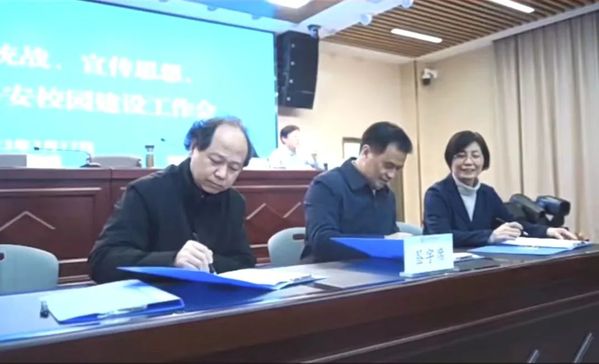 校党委书记邓院方、校长张英与学院负责人代表签订平安校园建设目标管理责任书。