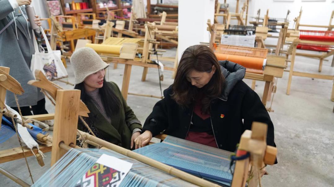23日下午,恩施中职王培茹等老师陪同学前教育学院的老师们前往恩施西兰卡普传习基地参观。西兰卡普传承人为老师们介绍了土家织锦“西兰卡普”的由来及发展历史,向老师们展示了西兰卡普的基础纹样。老师们真切感受到了非物质文化遗产的魅力。