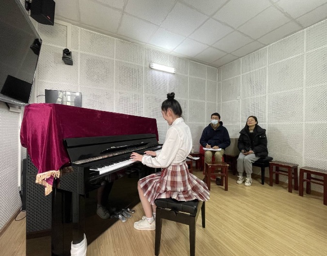 3月23日上午是专业技能考试,从14:00持续到17:00。首先进行美术考试,美术考核内容是命题简笔画,考生准备充分,在20分钟的时间内熟练地完成了美工作品,画出来的作品完整,构图好,上色恰当。美术考试结束后分组同步进行儿歌弹唱、幼儿故事讲述及舞蹈表演考试。在儿歌弹唱过程中,考生们的编配演唱演奏都不错,动作和指法到位。在讲故事过程中,大部分考生都能流畅完整生动地讲好故事,普通话标准,配以相应手势及动画背景,活泼生动。舞蹈表演考试考生们都身着舞蹈服,跟随音乐翩翩起舞,基本功扎实,感情投入。