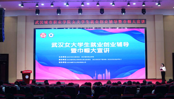 4月20日下午,武汉女大学生就业创业辅导暨巾帼大宣讲在我校南区学术报告厅举行。武汉市妇女联合会党组书记、主席魏静,武汉市妇女联合会发展部部长陈芸,武汉市妇女干部学校校长曹虹及部分教育专家、女企业家代表莅临现场。校党委书记邓院方,党委副书记、校长张英,副校长段永发出席活动。学校360名女大学生参与现场活动,新疆博尔塔拉职业技术学院教育学院50位女大学生通过“青春武城”视频直播号参与线上活动。