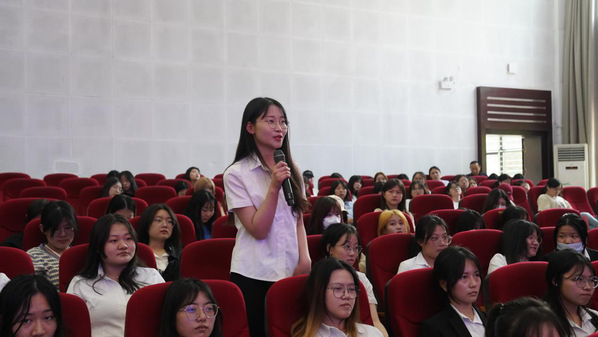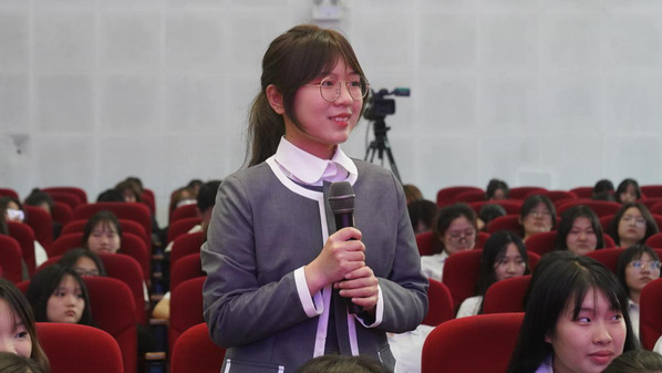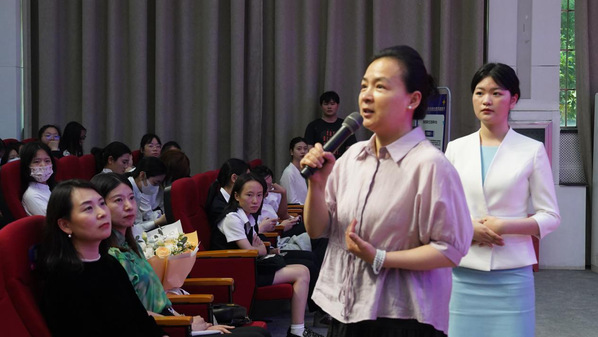在随后的互动环节,同学们踊跃发言,积极与嘉宾互动。武汉城市职业学院国际商务2201班张梦凡同学说,今天特地来到现场,只为感受女企业家的风采,学习创业经验,寻求创业方向;初等教育学院语文教育专业2201班学生李迎盈,了解了马丹老师的援藏支教经历后,想知道是什么信念支撑她克服困难,坚守初心;财经学院2106班龚颖想听听这些女强人们是如何兼顾家庭与事业,实现自我的价值……
