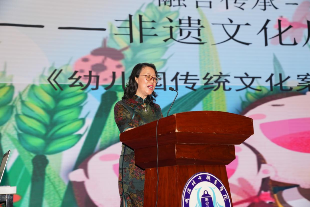 活动最后,夏宇虹教授对此次活动进行了点评,她说:园校深度合作,将非遗文化渗透到幼儿园课程中,让孩子们感受到非遗文化的独特魅力,领悟“传统文化之美”。同时也以“润物细无声”的方式让孩子们在童真、童趣中认识“非遗”、喜欢“非遗”、传承“非遗文化”。在实践中不断总结提炼,传承非遗文化之美,润泽幼儿创美童心,为幼儿园非遗文化教育实践提供了科学的建议,推动了幼儿园文化建设的高质量发展。
