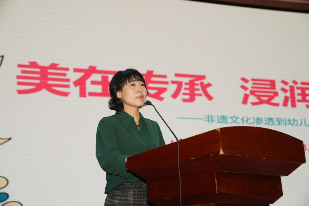 李黄华园长从联合彰显“非遗”价值、传承践行“美育”课程、融合展现“非遗”成果三个方面分享了将非遗文化融入文化环境、社会环境,班级区角,展示非遗文化魅力的优秀案例。幼儿园将“非遗”融入入幼儿一日生活,使幼儿在扎染、剪纸、戏曲、24节气和泥塑活动中接触、传承非遗文化,让幼儿在创造美、感受美的过程中,播下保护和传承“非遗”的良好种子,增强幼儿的民族认同感和自豪感。