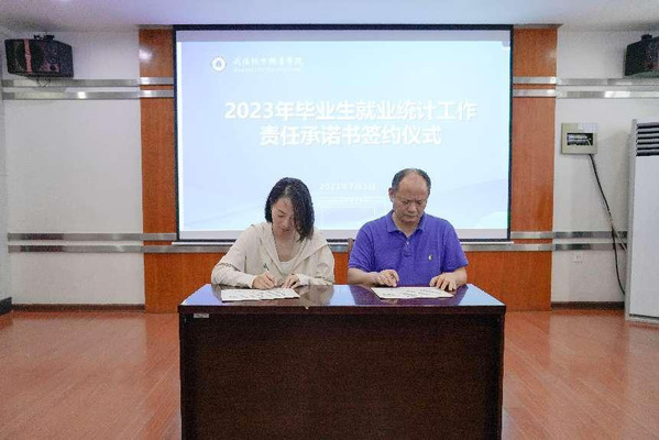会上,副校段永发长代表学校与各学院党总支书记签订《武汉城市职业学院2023年毕业生就业统计工作责任承诺书》。