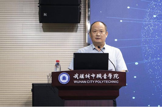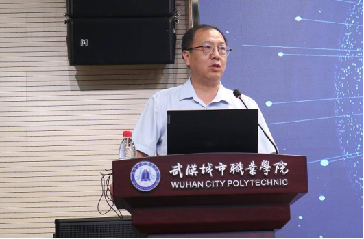 在主题交流环节,我校实训室与设备管理处(现代教育技术中心)处长彭伟分享了学校在数字校园建设方面的做法和经验。他表示,根据规划,“十四五”期间武汉城市职业学院将从强基础、补短板、智慧化、提素养、保网安等五大重点工程开展数字校园的建设工作。此外,彭伟就如何应用“数据驱动”开展校园现代治理,物联网建设与管理、数字孪生校园等工作进行了分享。