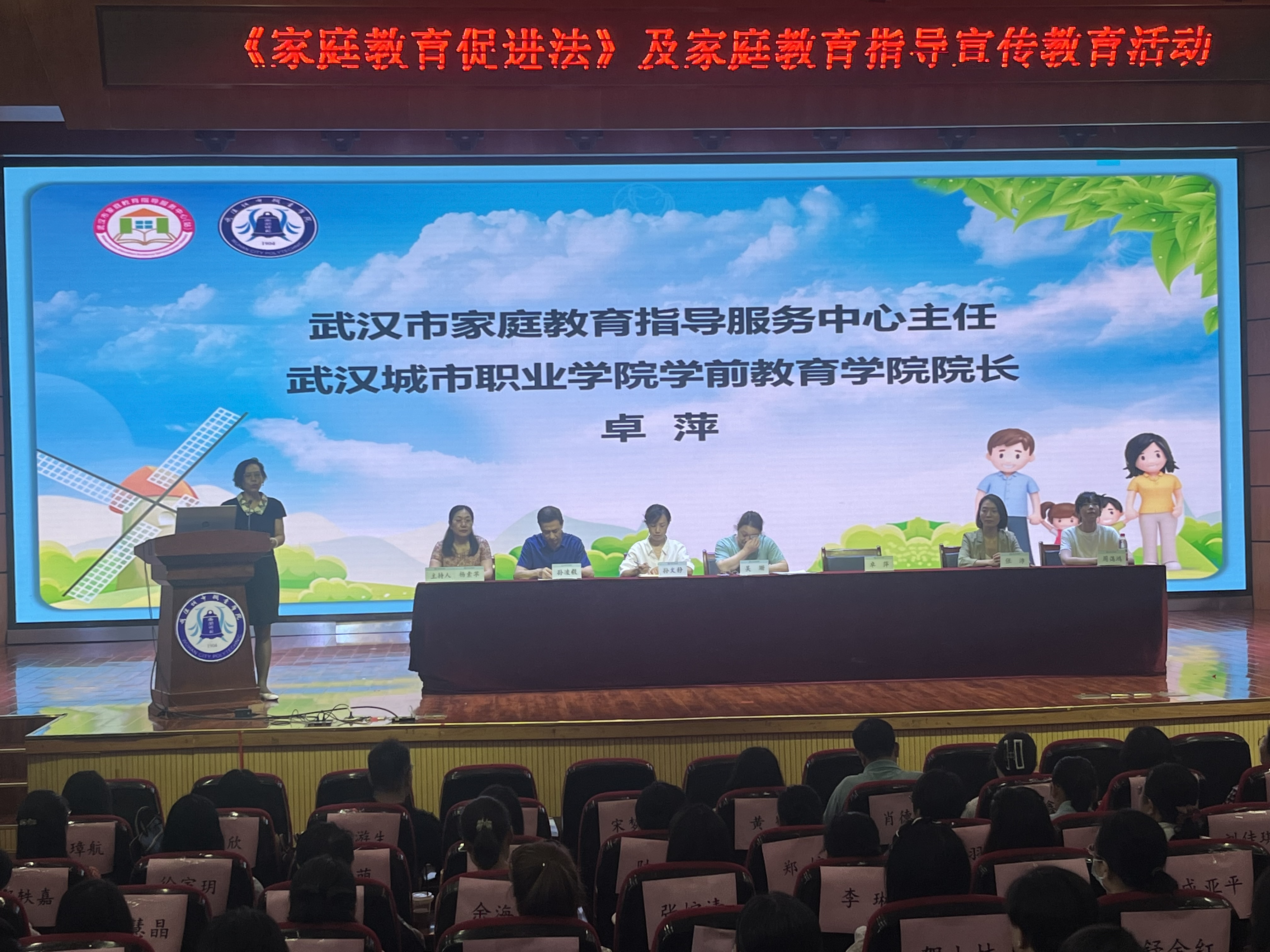 为贯彻落实《中华人民共和国家庭教育促进法》和《教育部等十三部门关于健全学校家庭社会协同育人机制的意见》,加强家庭教育指导队伍建设,提高家庭教育指导服务水平,2023年7月10日上午8:30,由武汉市妇女联合会举办、武汉城市职业学院学前教育学院承办的《家庭教育促进法》及家庭教育指导服务宣传教育活动启动仪式在学前教育学院小礼堂顺利举行。