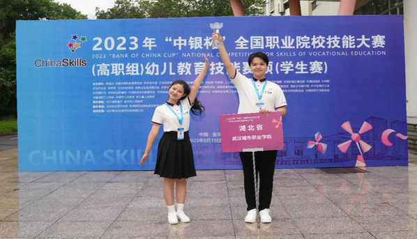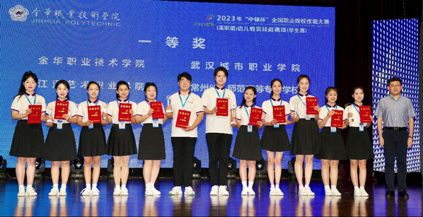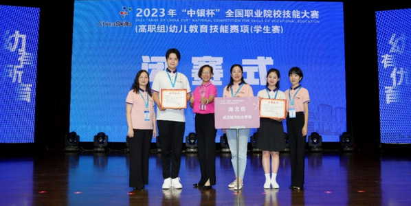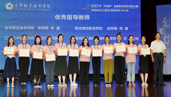 2023年全国职业院校技能大赛(高职组)“幼儿教育技能”赛项(学生赛)于8月19日至22日在金华职业技术学院举行,来自全国59所职业院校的118名优秀学子同台竞技。经过四天激烈角逐,我校学前教育学院汤璇、王煜泽组成的参赛队荣获大赛一等奖,高芳梅、周颖两位老师获“优秀指导教师”称号,这是该学院继2022年国赛一等奖后再获殊荣,充分彰显了学校百年师范教育的深厚底蕴和实力。