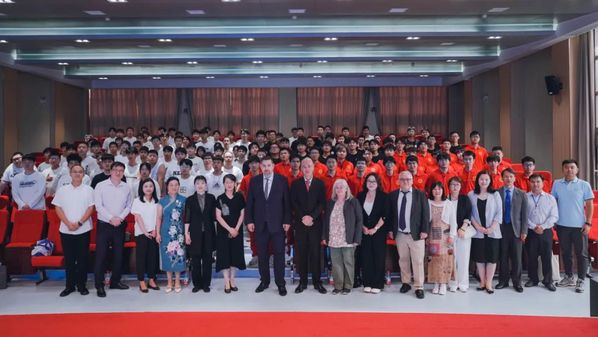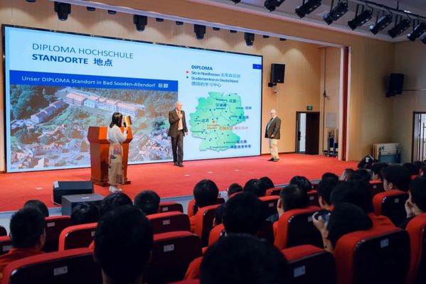 在机电学院报告厅,德方代表团与我校中德合作办学项目全体学生进行了一场氛围热烈的师生见面会。通过对中德合作办学项目的详细介绍和互动问答环节,纳莫克校长和德国杜伊斯堡语言学校朔尔滕校长认真而仔细地解答了学生提出的关于留学德国后专业和语言课程学习、学习方法优化、未来就业和职业发展等方面的问题,让学生们对赴德留学和德语学习有了更清晰的了解和认知,增强了信心。纳莫克校长一行对我校学生认真的学习态度也提出表扬,看到学生能熟练使用德语进行对话,他们表示由衷的高兴:“非常不容易,可以看出武城院在中德合作办学项目中资金、师资、管理上全力支持,也可以看出学生们非常的努力,零基础学德语,现在就能使用德语发言,非常不容易!”