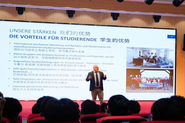 德国北黑森应用技术大学副校长纳莫克对我校先进的教学条件表示高度赞赏,对我校在中德合作办学上给予的大力支持表示衷心的感谢,他指出,三年的中德合作办学项目为两校间友谊的建立埋下了深厚基础,学校将加强项目管理,持续在选优配强师资力量,提高服务水平等方面不断努力,为学生成长成才提供坚实基础。同时期盼与学校在学生交流,师资队伍建设等方面进行更多合作,实现共同发展。