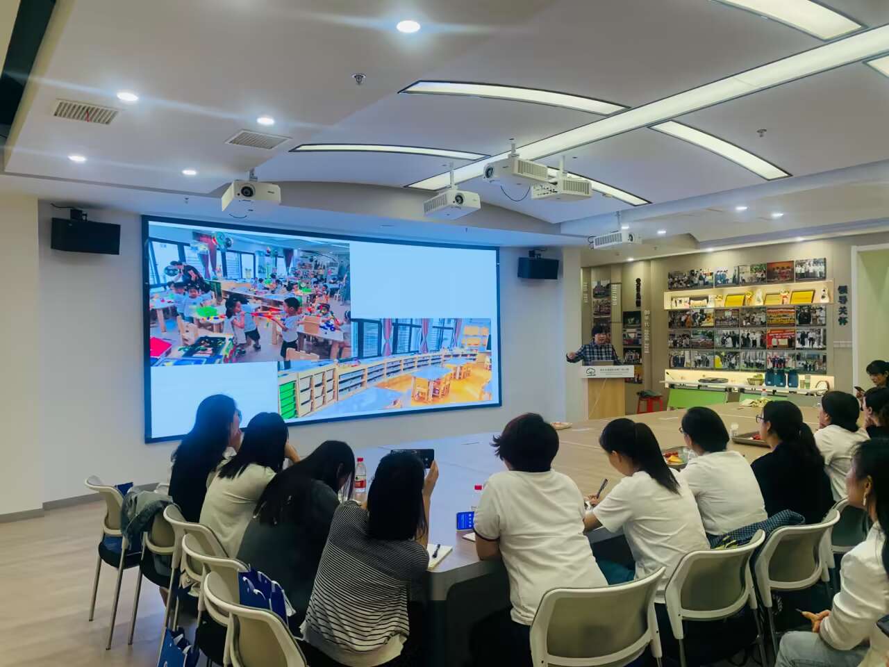 环境孕育着无声的教育,在园方领导的带领下,园长们参观了跟岗实践的园所环境和班级环境。她们时而驻足观赏,时而拍照记录,时而交流互动,感受每所园所独特的办园理念、办园特色及办园文化。