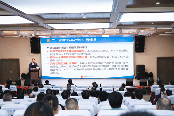 10月23日,2023年全省高职院校“双高计划”建设推进会在我校财经学院报告厅举行,湖北省委教育工委专职副书记、省教育厅党组成员张幸平出席并作重要讲话。来自全省的29所高职院校负责人参加会议。