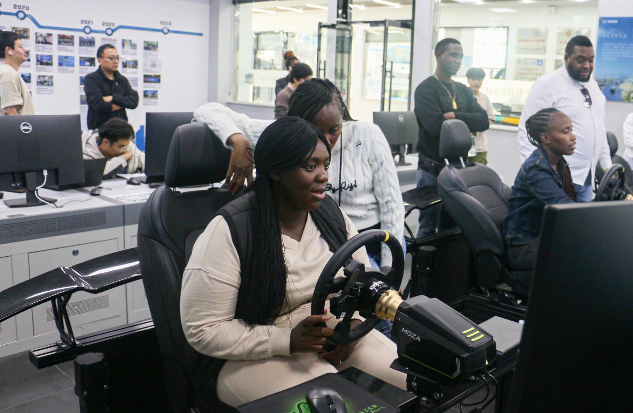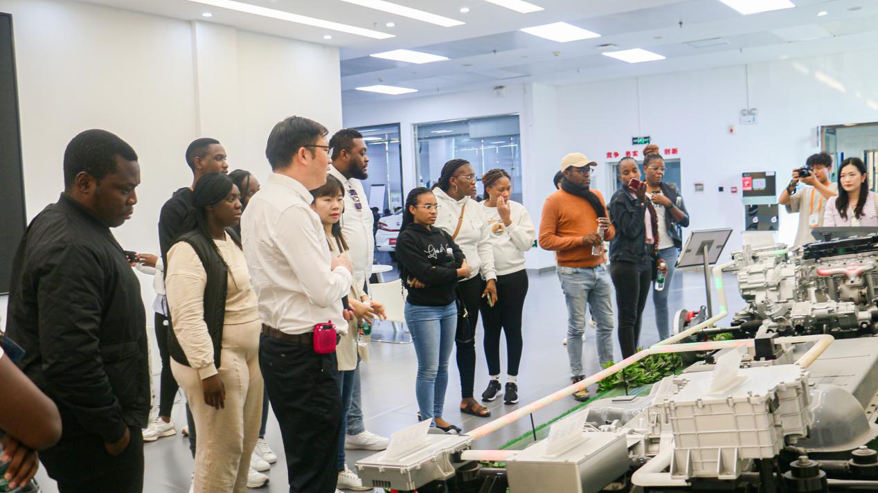 在学生志愿者的带领下,外国学员参观了汽车学院和东风悦享科技有限公司、戴姆勒奔驰有限公司,以及比亚迪有限公司共建的汽车产业学院。学员们体验了各种功能的无人驾驶车,学习智能网联汽车大数据中心的精确数据。外国学员们操控远程驾驶台架,体验远程控制千里之外的智能网联汽车,参观学习车身修复和喷漆、钣金技术。先进的技术让学员们连连赞叹。在参观新能源车的过程中,学员们看到了各种新能源车型,掌握了电池充电和运行的原理。学员兴趣浓郁,现场互动良好。
