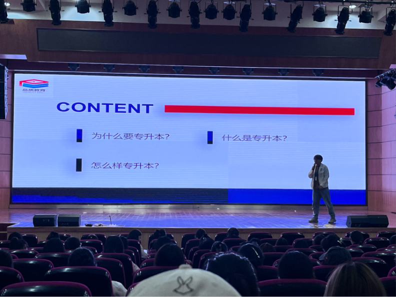 为提高学前教育学院2024届毕业生对专升本考试的了解,树立正确的学习目标,我院于2023年10月24日晚上在北区艺术楼小礼堂举行了专升本分享会。本次分享会由品质教育专升本培训中心的蒋丰俊老师主讲,我院2024届毕业生各班学生代表参会。