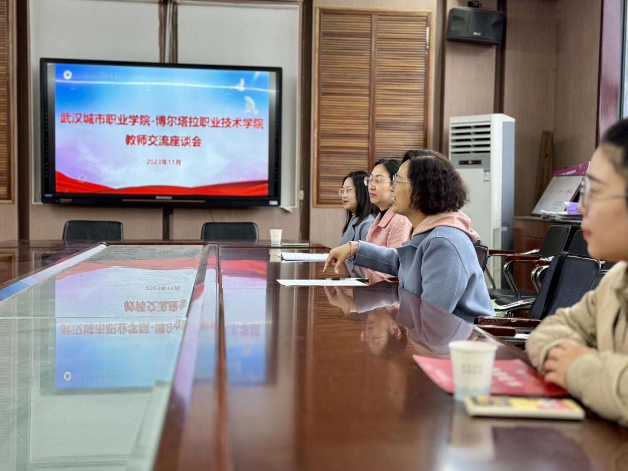 秋高气爽,离别在即;重温友谊,醇美甘甜。转眼间,新疆博尔塔拉职业技术学院来我院跟岗学习的李嘉艺、赖馨两位老师,均已圆满完成了跟岗学习任务。为加强两地工作交流,表达对跟岗教师的关怀,2023年11月17日上午,一场简单而温馨的跟岗教师交流座谈会在学院艺术楼一楼会议室举行。学院院长卓萍、副院长杨素苹、院长助理张万红、学校人事处王琦文老师以及学院部分教研室相关老师参加座谈。