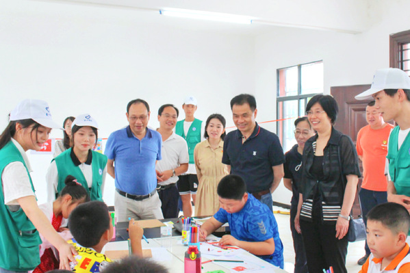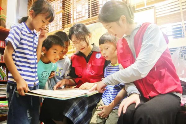 暑期“三下乡”社会实践队员和孩子们一起阅读党史书籍