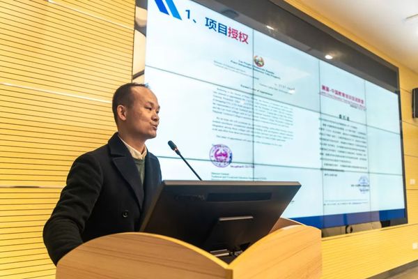 老挝教育体育部职业教育发展研究院院长本森·哈蒙蒂博士视频致辞。他向为老挝职业教育发展做出积极贡献的武汉城市职业学院表达最诚挚的谢意,并表示学校的职业教育标准业内领先,既体现中国职业教育发展,又符合老挝发展需求,将在老挝积极推广使用。