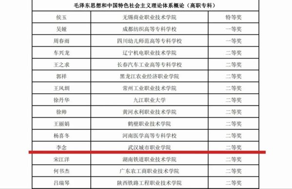 近日,第三届全国高校思想政治理论课教学展示活动评选结果揭晓,学校马克思主义学院徐冰老师喜获《习近平新时代中国特色社会主义思想概论》课程(高职专科组)一等奖,李念老师荣获《毛泽东思想和中国特色社会主义理论体系概论》课程(高职专科组)二等奖,这是2位老师继双双获得湖北省思政课教学展示特等奖后,取得学校思政课教学展示的国赛最好成绩。