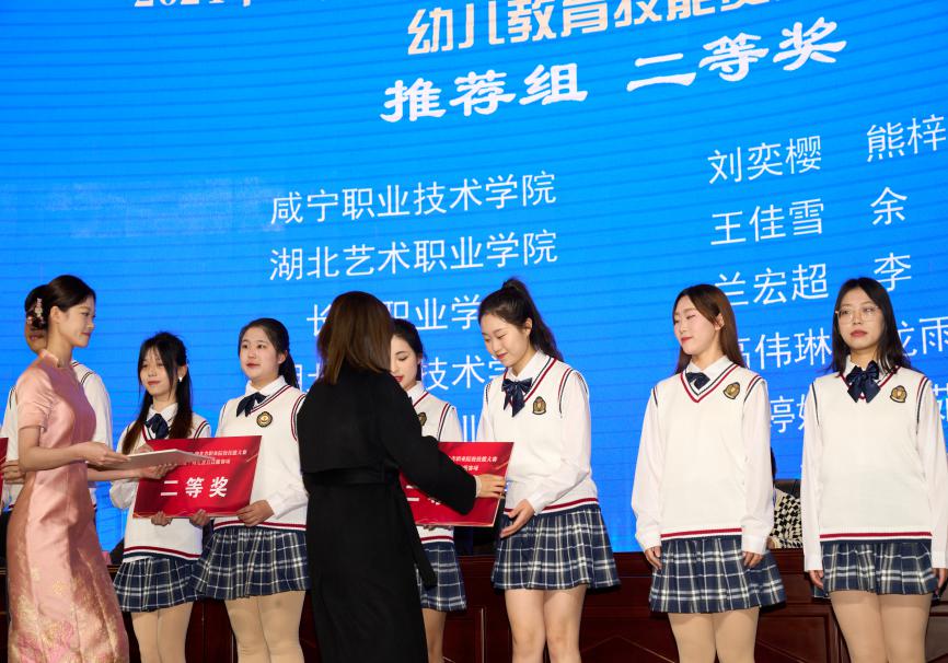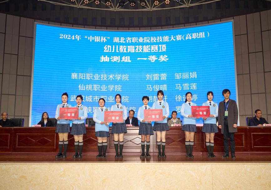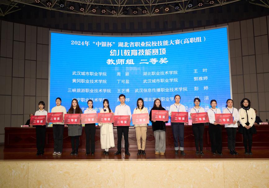 3月8日-11日,2024年“中银杯”湖北省职业院校“幼儿教育技能”(高职组)大赛在仙桃市举办。我院教师队选手周颖、郭雅婷,推荐队选手张婷婷、贾茹仙以及两位抽测队选手徐诗婷、胡静轩参与比赛的角逐。三支参赛队沉着应战,奋力拼搏,在赛场中表现自信大方,展示了我院师生的风采和扎实的综合素质,均取得了优异的成绩。周颖和郭雅婷老师获得教师队二等奖,张婷婷、贾茹仙荣获推荐队二等奖,徐诗婷、胡静轩荣获抽测队一等奖。