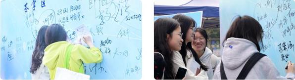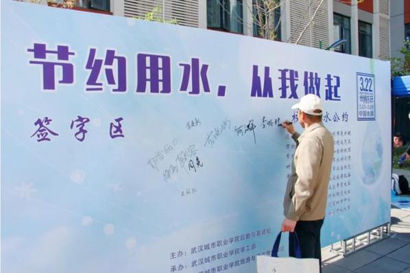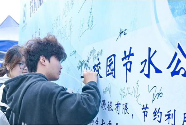 活动分别在南校区学生食堂和北校区H栋各设置了宣传横幅、签名墙和多个宣传展板,制作了图文并茂的节水宣传手册,吸引了众多师生的目光,路过活动现场的师生主动参与进来,积极了解节水知识,主动在节水签名墙上签名,共同启动了本次节水周活动“按钮”。