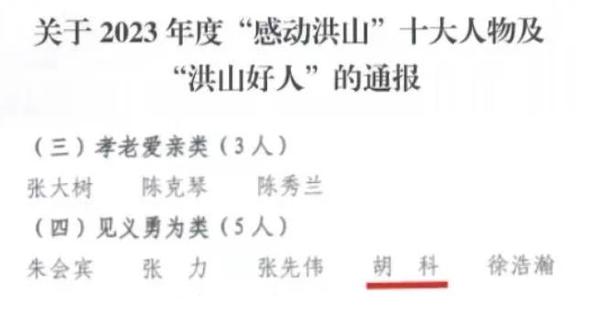 近日,中共武汉市洪山区委宣传部通报了2023年度“洪山好人”名单,学校机电工程学院2023届毕业生胡科获评2023年度“洪山好人”。