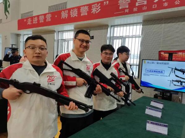 胡科(右二)与“西部计划”志愿者一起参加阿拉山口市公安局
