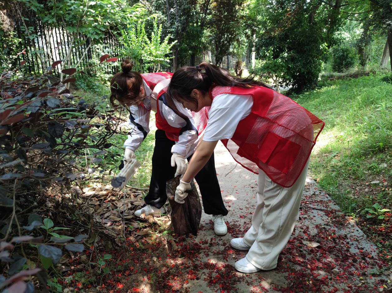 然后,由社区工作人员带领学生和居民志愿者清理湖边绿道垃圾,守护河湖环境从来不只事关一个人、一群人,而是家住野芷湖边每个人的事。