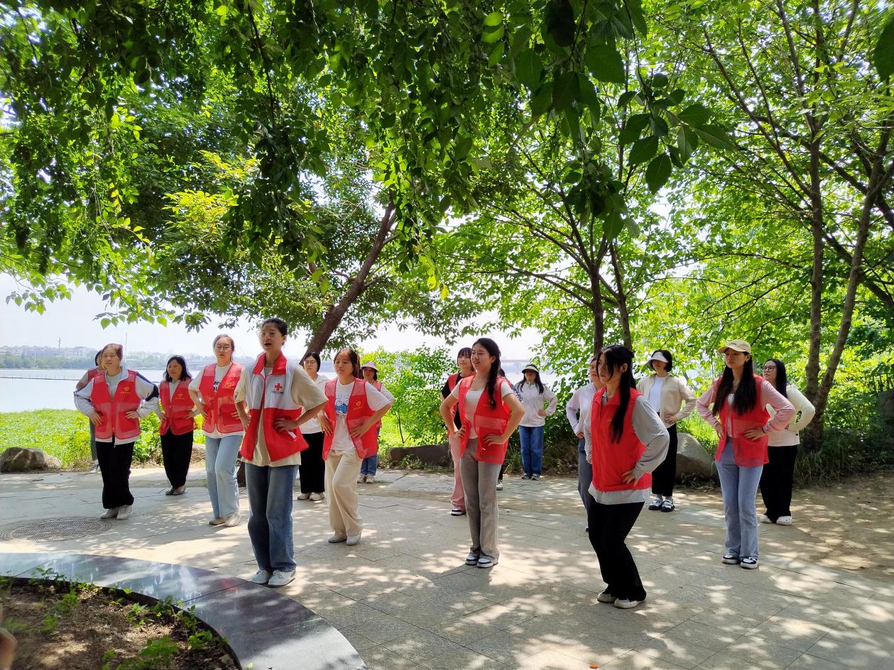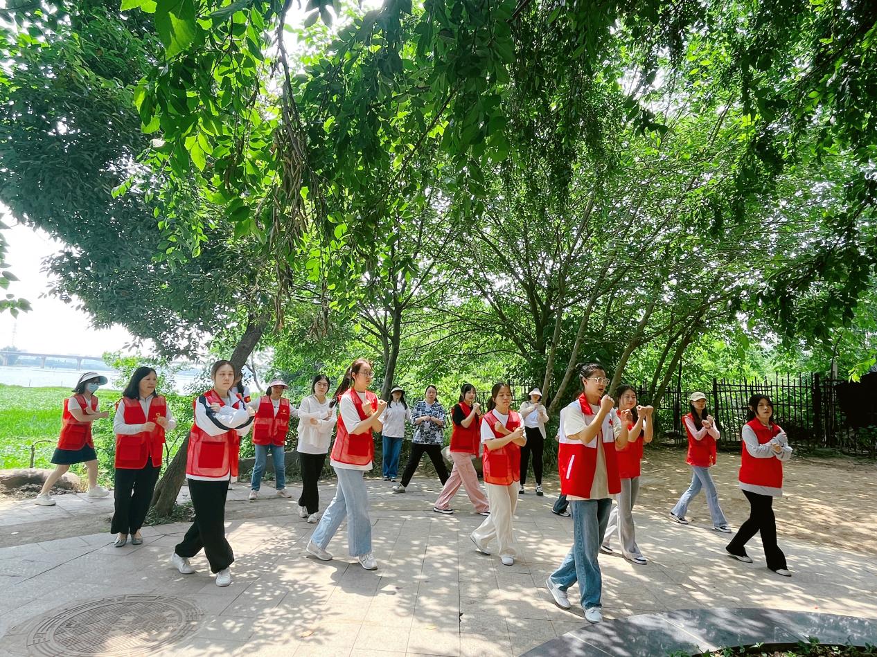 最后,学前教育学院学生为社区居民在湖边绿道开展健身操培训,让居民在绿水青山中锻炼身体,在宣传河湖长制知识的同时,提升居民朋友知水、爱水、护水、惜水意识,充分调动广大群众参与河湖长制工作的意识和能力,构建共建共治共享新格局。