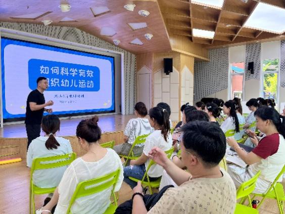 培训过程中,杨老师鼓励教师们积极提问、分享经验。针对老师们的疑惑和问题,他进行了现场交流和解答,使教师们对幼儿园体育教育有了更深入的理解。除本次集中培训外,杨老师每周会到幼儿园进行下园进班指导,带幼儿进行体育活动,与班上老师沟通交流,促进幼儿园体育活动的开展。自2024年3月至6月,共有300余名教师和200余名幼儿参与此项目培训,累计培训500人次。