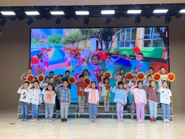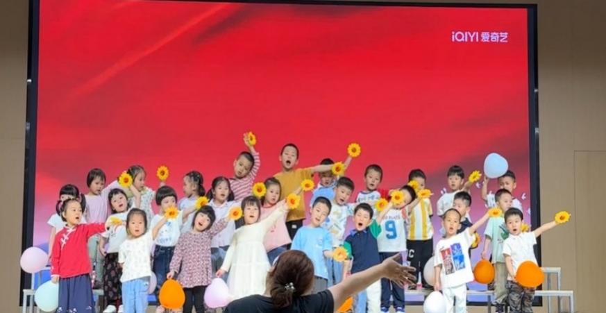 大五班童声合唱《我向祖国敬个礼》,孩子们的自然声音演唱、二声部的准确进入及表演状态,劳丹老师给予了大大的夸奖。同时也提出了在歌曲的高潮部分,教师可调整指挥手势的幅度来调动孩子的情绪,让孩子的声音随同情绪释放出来,已达到更好的表演效果。随后在观看中三班童声合唱《萱草花》时,对领唱幼儿的声音的音准、情绪的表达及动作的自如给予了表扬,也对指挥老师的动作幅度和情绪的带动上给出相应的建议。最后萌哒哒的小一班孩子们手拿彩色气球有序的出场,加上师幼同台表表演的创意设计,也得到了两位指导老师的肯定与赞扬。其中建议将彩色气球换成红色气球,孩子们要学会看老师的指挥。