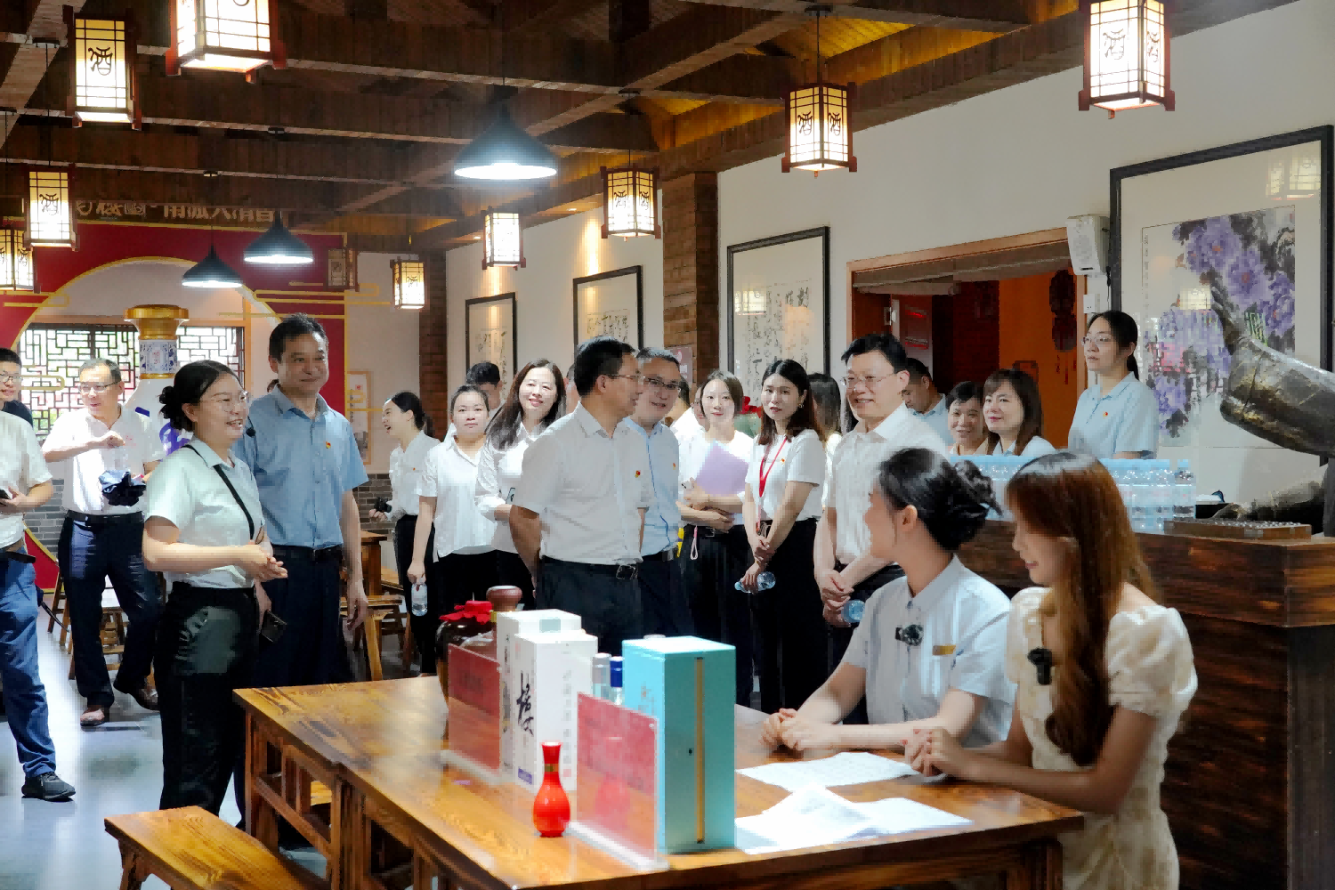 首先,黄鹤楼酒业有限公司人力资源总监张佳带领与会全体党员参观了天成坊酿造车间、名人酒窖和黄鹤楼酒文化博物馆,了解生产工艺、过程及历史。在参观酿造过程,他向大家讲解在酿造过程中企业的“匠心”所在,也为大家讲解酿酒的基本工艺及品尝方法,并介绍正在企业直播售卖黄鹤楼酒业相关产品的我校学生见习情况。
