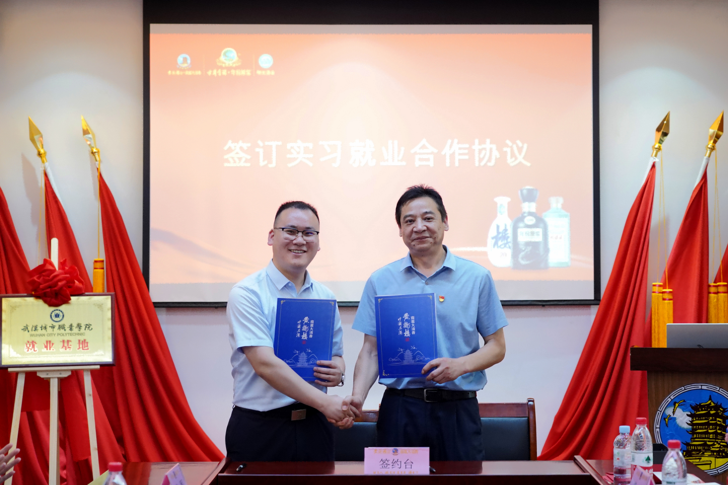 紧接着,武汉城市职业学院在黄鹤楼酒业有限公司设立实习就业基地活动展开了揭牌及座谈活动。黄鹤楼酒业有限公司党委委员、副总经理魏国详细介绍了黄鹤楼酒业有限公司酒业党建工作,武汉园区、咸宁园区及随州园区等发展情况。他表示黄鹤楼酒业有限公司做实“党建立企、党建稳企、党建兴企”战略,希望能与武汉城市职业学院建立合作关系,深化党建交流,就人才培养开展深入研究合作。