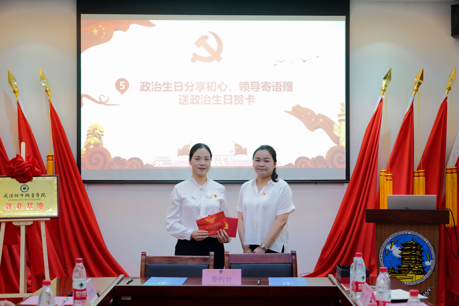 为深入贯彻党的二十大精神和习近平总书记关于党纪学习教育的重要讲话精神,落实党中央、国务院“访企拓岗促就业”专项行动计划要求,贯彻教育部办公厅关于开展2024年职业院校“技能成长、强国有我”系列教育活动安排,扎实有力推进党建活动走深走实,2024年6月19日,在武汉城市职业学院党委委员、副校长杨爱民、招生就业处处长彭怀学的带领下,外语学院党总支及各学院党员代表们赴黄鹤楼酒业有限公司(武汉园区)与黄鹤楼酒业有限公司联合开展“创意主题党日我来开”活动。