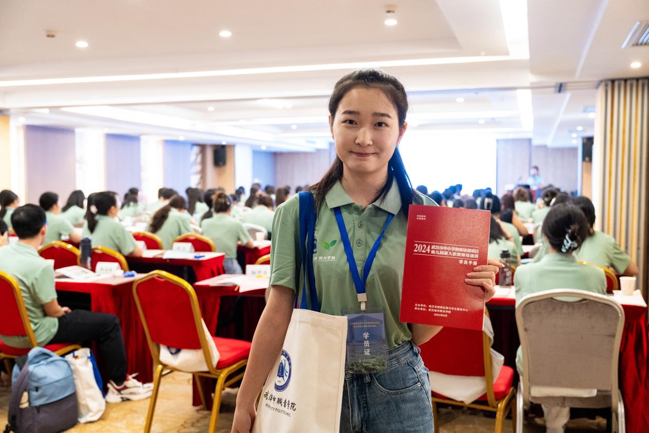 “我在武城职度过了五年的学习时光,学到了许多专业理论知识和专业技能,感谢母校,感谢老师们对我的教诲与指导。这次幼儿教师培训对我来说是一次难得的学习机会和成长经历。我深刻体会到了作为一名教育工作者所肩负的责任与使命,同时也收获了宝贵的知识与经验。我将把所学所得应用到实际工作中去,努力成为一名更加优秀的幼儿教师,也希望武汉城市职业学院的学弟学妹们能保持初心,用积极乐观的心态学习生活,在热爱的领域中发光发亮。”