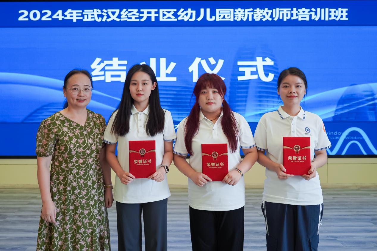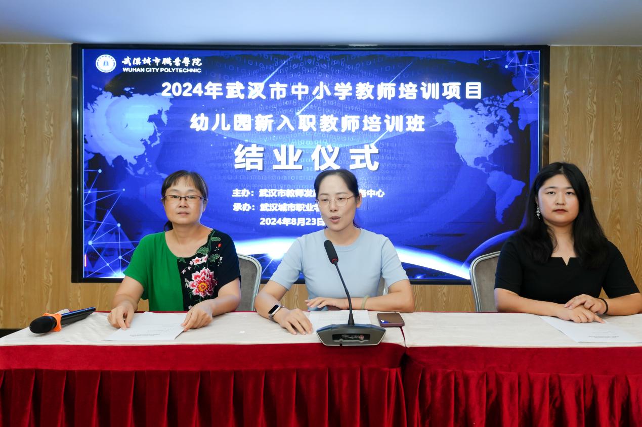 8月23日下午,武汉经开区幼儿园新教师培训、武汉市幼儿园新教师培训均圆满结业。经开区教育局基础教育科学前教育负责人李艳华主任、王燕园长、武汉城市职业学院继续教育学院曾菁院长、武汉城市职业学院学前教育学院党总支书记张沛、项目管理团队及培训班学员参加结业典礼。结业议程包括学员成果展示、观看培训回顾视频、颁发优秀学员证书、承办方领导发表总结讲话。