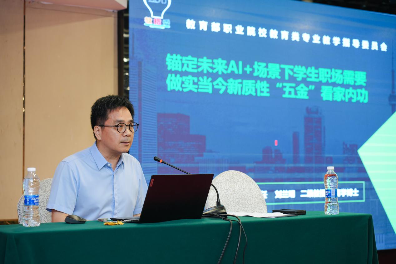 在题为《锚定未来AI+场景下学生职场需要,做实当今新质性“五金”看家内功》主题讲座中,刘兰明主任强调,面对AI+时代的新变化,各位委员应拥抱普及、突围为王、强化品牌、彰显特色,并培养AI人才,支撑专业发展。他提出,要炼好“五金”看家内功,即熟悉AI未来应用场景、推进新质教育金专业、开发工学结合的金教材、打造与时俱进的金教师、建设学以致用的金课程、探究教师教育新模式,更好地面向新未来。同时,刘主任期待委员们要把握职业教育新形势新要求,加强教育强国建设,积极争当有态度、有水平、有担当、有纪律的“四有”委员。