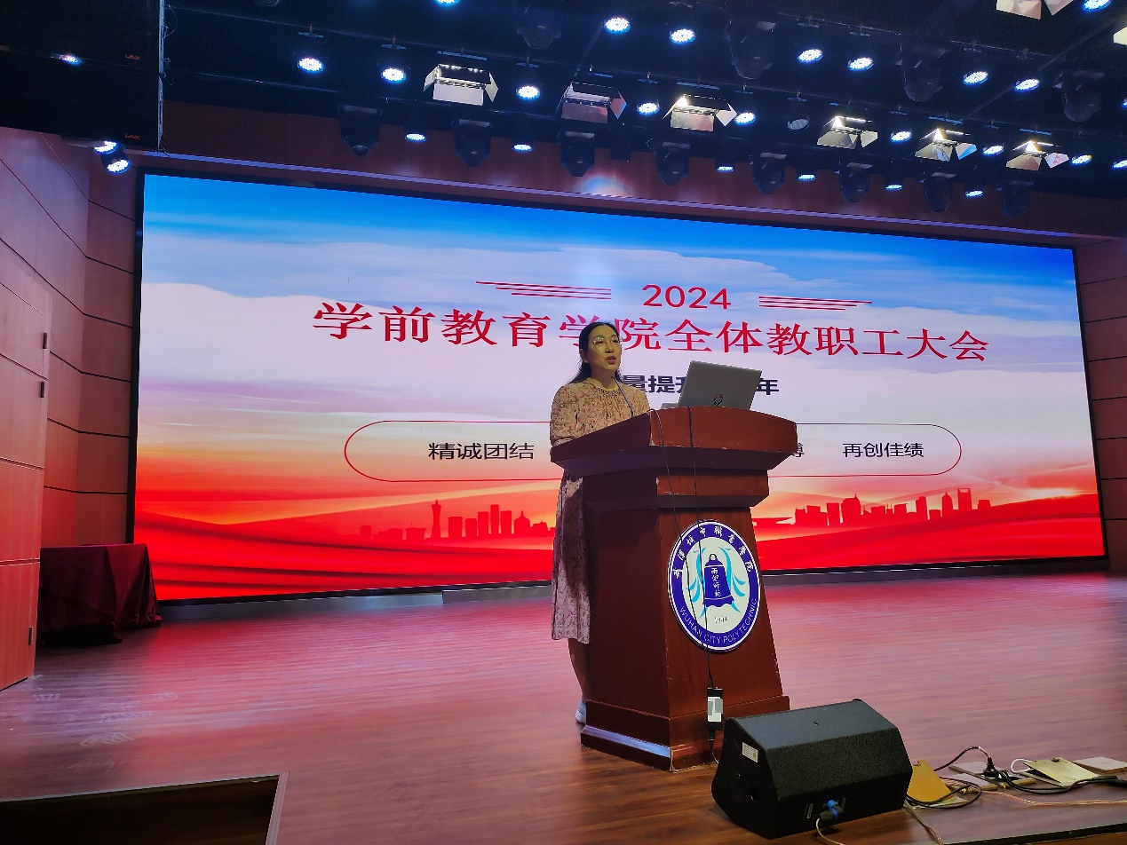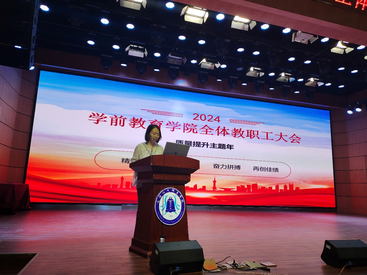 残云收夏暑,新雨带秋岚。盛夏终章,是秋季开学的序言;秋风送爽,是翻开新学年的篇章。为确保学院各项工作迅速步入正轨,扎实做好新学期工作,9月1日15:00,学前教育学院召开了2024年秋季新学期全体教职工大会。本次会议以“质量提升主题年”为主题,关键词是“精诚团结、 攻坚克难、奋力拼搏、再创佳绩”。