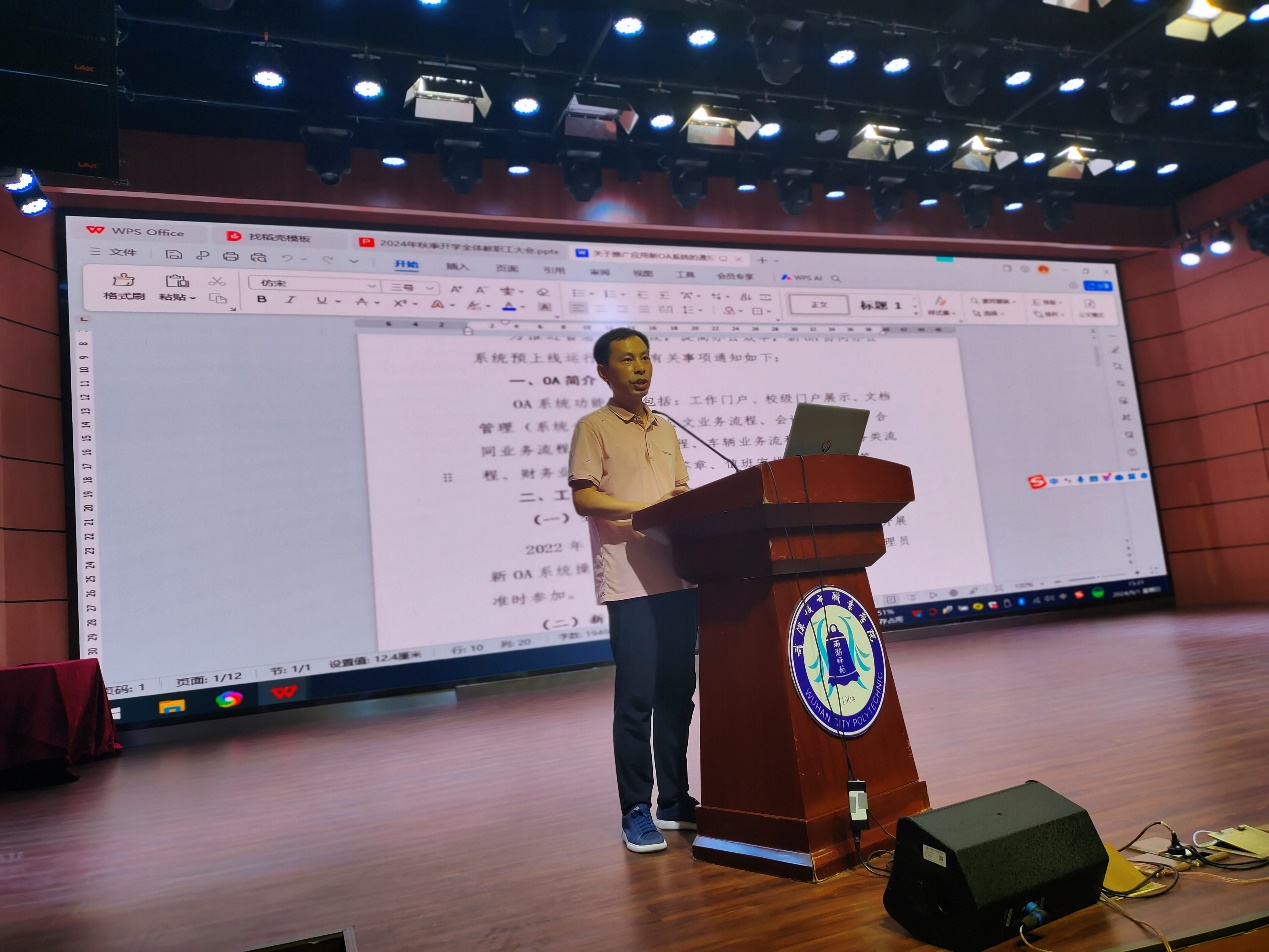 会议伊始,首先由办公室副主任孙文刚老师对新入职的7位教师进行了介绍,他们的加入为学院注入了新的活力。接着,陶亚哲老师分享了暑假在青岛参加AI大模型技术教师研修培训的心得,内容丰富多彩,既有AI大模型技术的基础理论与介绍,也有实际教学案例的深入剖析,为老师们实现智能化、个性化、高效化的教学提供了新途径。孙文刚老师则就学校0A系统使用进行了实用的经验分享,旨在提高老师们的工作效率和协作能力。