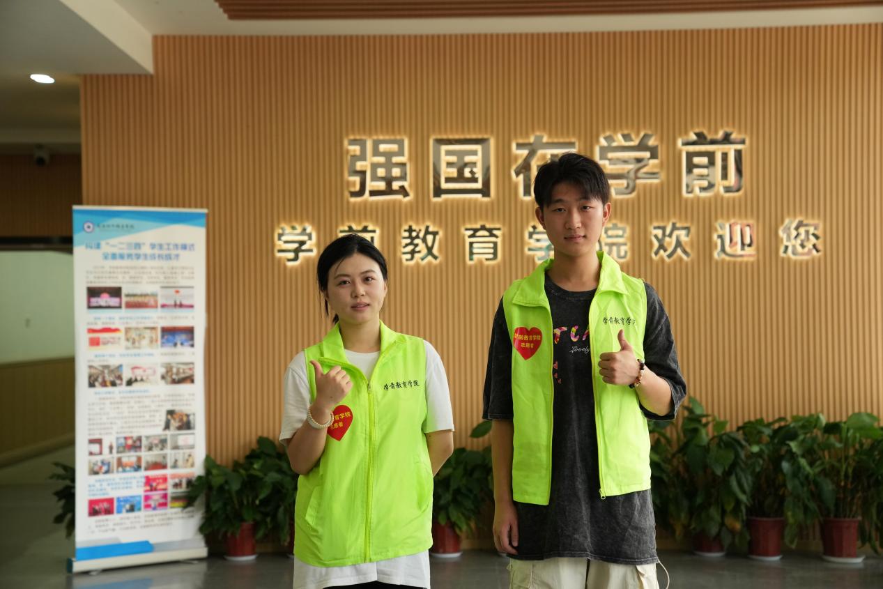 灼日炎炎,学前教育学院的志愿者们提前与新生取得联系,在报道点等候着新生,展开“点对点”迎新服务。他们满怀笑容,为萌新们耐心解答疑问,搬运行李,以实际行动践行着“奉献、友爱、互助、进步”的志愿精神。这是一代一代的传承与延续,代代人的奉献与使命。我们将爱和温暖带给你们,希望你们将温暖延续。