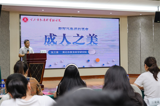 开班首日,黄石市教育科学研究院特级正高级教授张兰喜为学员们带来了一场别开生面的讲座。张教授以“素质时代教师的使命——成人之美”为主题,深入浅出地阐述了教师的核心素养和师德要求。他引用了习近平总书记关于教育的重要论述,强调了新时代教师应具备的家国情怀、人文情怀和教育情怀。张教授还分享了自己的教育理念——“有温度的教育”,倡导打造温厚的教师、塑造温雅的学生、营造温馨的环境、锻造温情的校长。这一理念让在座的学员们深受启发,对教育的真谛有了更深的理解。